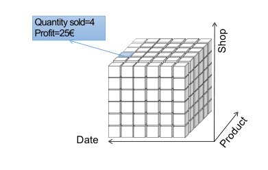 - in a DWH data are organized in a multidimensional structure that store data based in categories