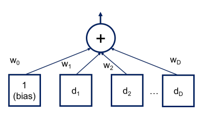 d1,d2….dd sono gli attributi w0,w1…wd sono i pesi da calibrare, il primo elemento ha sempre valore input=1, detto Bias serve ad ammettere iperpiano che non passano dall’origine.