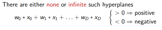 L’iperpiano è descritto da un set di pesi in una equazione lineare sugli attributi x0…xd