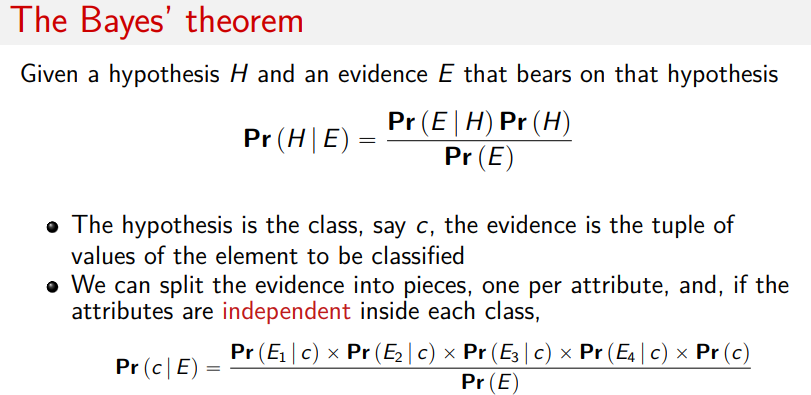 con il training valuti Pr(H) creando il modello di classificazione mentre a runtime vedi Pr(E|H)