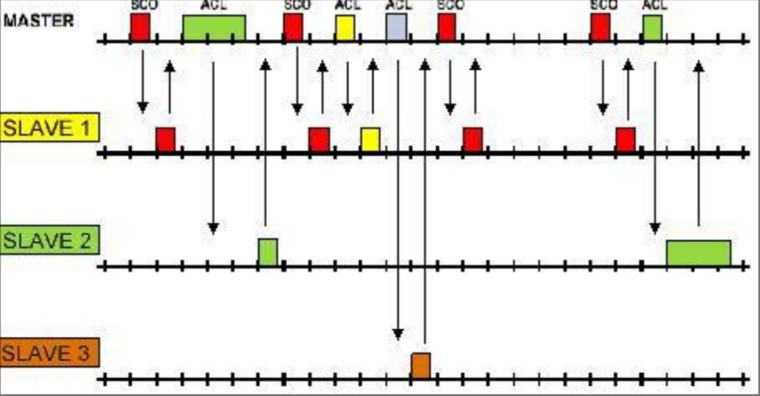ACL packets are best effort communication with no guaranteed bandwidth this allow for higher bandwidth, it also support asymmetric bandwidth allocation for the 2 directions. In this connection types the slave can transmit only if in the previous time slot has received a packet from the master, in this mode retransmissions are allowed