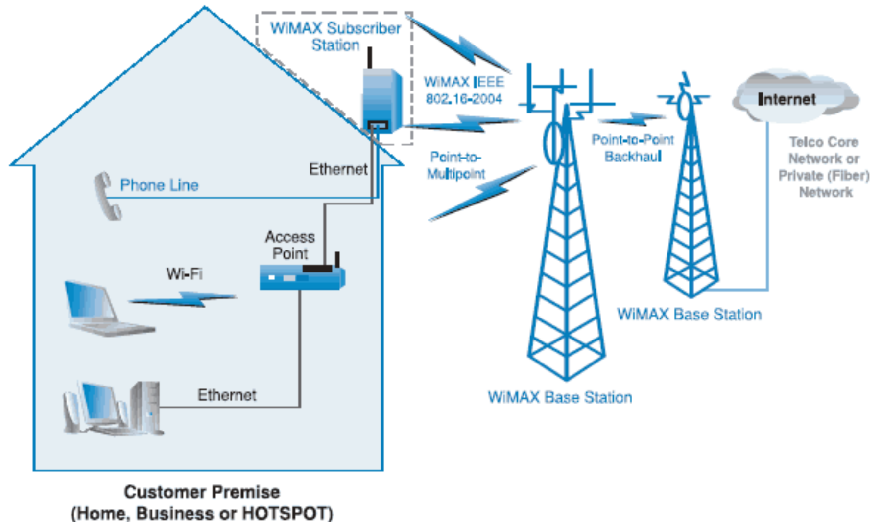 Technology solution for metropolitan area networks (MAN), the idea is to connect multiple antennas (subscriber station) to a central base station, in order to connect areas where fiber cable would be economically impossible